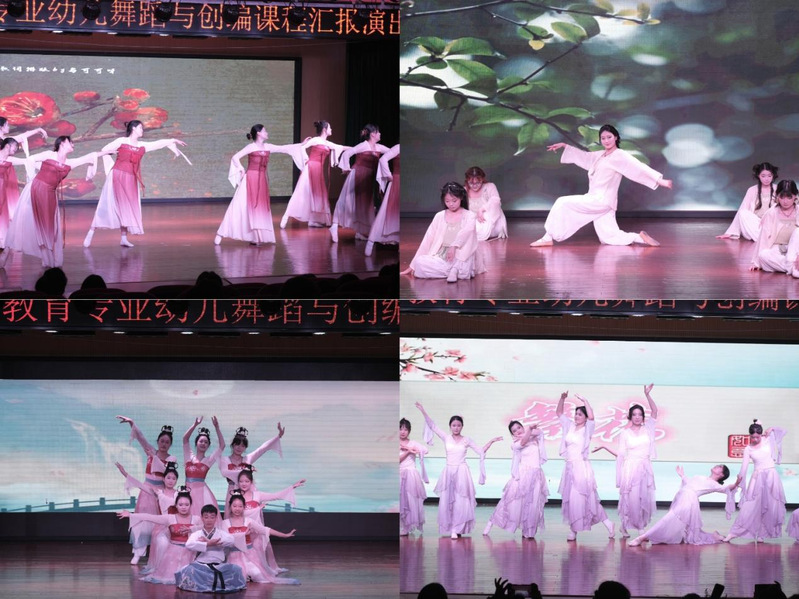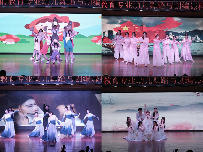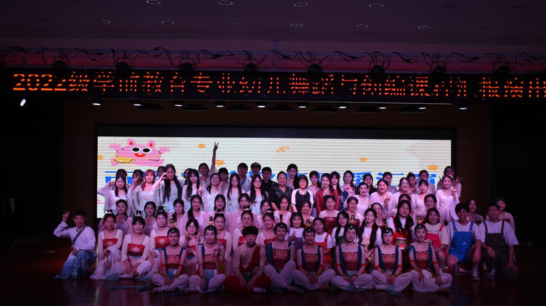 6 月 27 日下午,教师教育学院学前教育专业在艺术楼多功能音乐报告厅举行了 2022 级学前教育专业《幼儿舞蹈与创编》课程的汇报演出。此次专业汇演的导演与监制由专业教师刘杨担任,2022 级学前教育专业的全体同学参演。教师教育学院副院长郑艳、学院团委书记汤重、部分专业教师出席并观看了汇报演出。