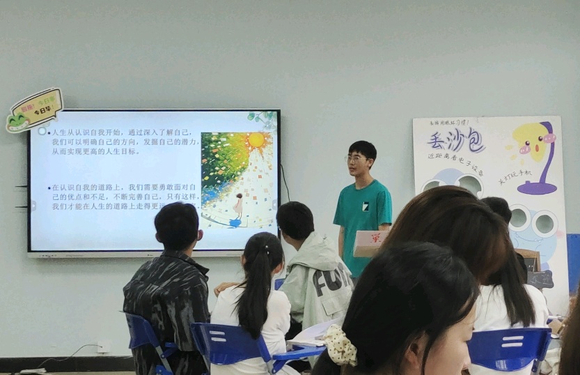 为了帮助大一新生能够更好地认识自我,了解自我以及能够在大学生活中更好地发展自我。10月16日我校心理健康教育中心在团体辅导室开展以“认识自我,拥抱明天”为主题的团辅活动。本次活动由教师教育学院应用心理学专业学生马晨曦、朱雪琴、陈芳圆、刘雅丽担任设计者和带领者,同时得到教师教育学院专业教师团队的指导与支持。