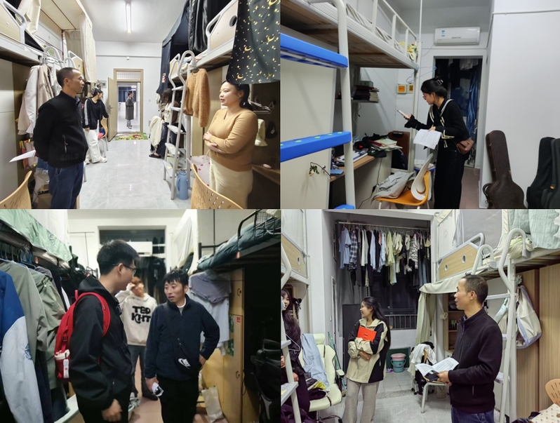 深入学生宿舍。每月,学院党政领导、辅导员常态化走访学生宿舍,关心关爱学生生活和学习,开展安全卫生检查、反诈宣传、劳动教育、学业交流等活动,提高学生安全防范意识和生涯规划意识,引导学生全面发展,争当时代新人。(文/王相 图/王相、学院学生会 初审/左劲中 终审/朱玉票)