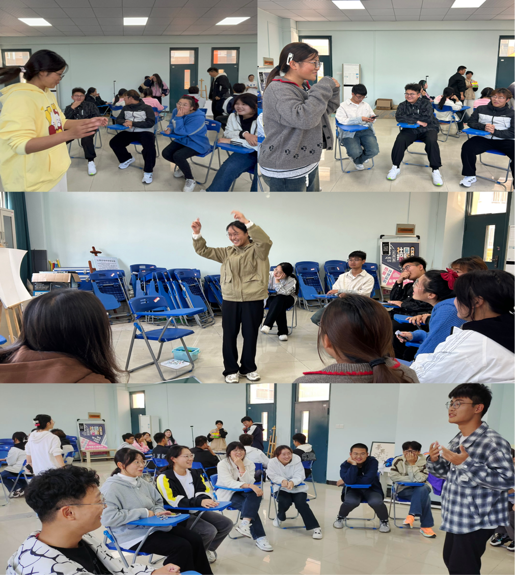 活动现场气氛活跃,来自不同专业的新生们怀揣着期待与好奇,踊跃参与到团辅游戏当中。活动伊始,带领者陶宇欣热情地向同学们问好,并以热身游戏“桃花朵朵开”迅速打破了新生们之间的陌生感。在陶宇欣的口令下,新生们如同春日里盛开的桃花般迅速聚拢,组成一个个小团体。这个游戏不仅考验了同学们的反应速度,更让大家在欢声笑语中拉近了彼此的距离。