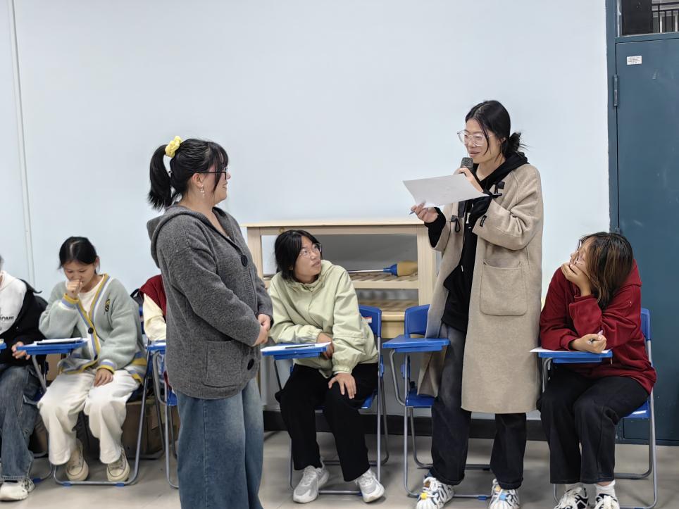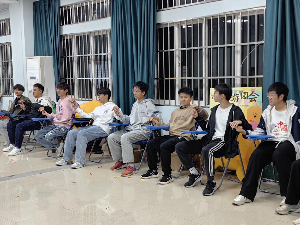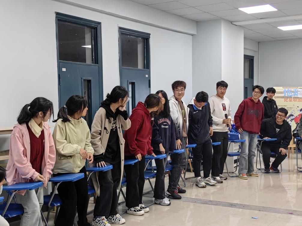 活动在一片欢声笑语中拉开帷幕,首先登场的是热身游戏 ——“看我眼色”。游戏规则十分有趣,所有成员围坐成一个圆圈,如同紧密相连的同心圆一般。接着,报数环节开始,大家依次喊出 1、2、3……,与此同时,每喊出一个数字,坐在报数者右手边相应数量的人需要迅速起身。这个过程就像是一场充满趣味的默契考验,每一个数字都是一次挑战。在游戏过程中,那些站错或者未能及时站起来的同学,将会接受扎气球惩罚。这看似小小的惩罚环节,却为整个游戏增添了更多欢乐元素。随着游戏的推进,现场气氛愈发高涨,同学们的欢笑声此起彼伏。通过这个小游戏,不仅增强了同学们的判断力和反应能力,活跃了团体氛围,也拉进了团体成员之间的距离。