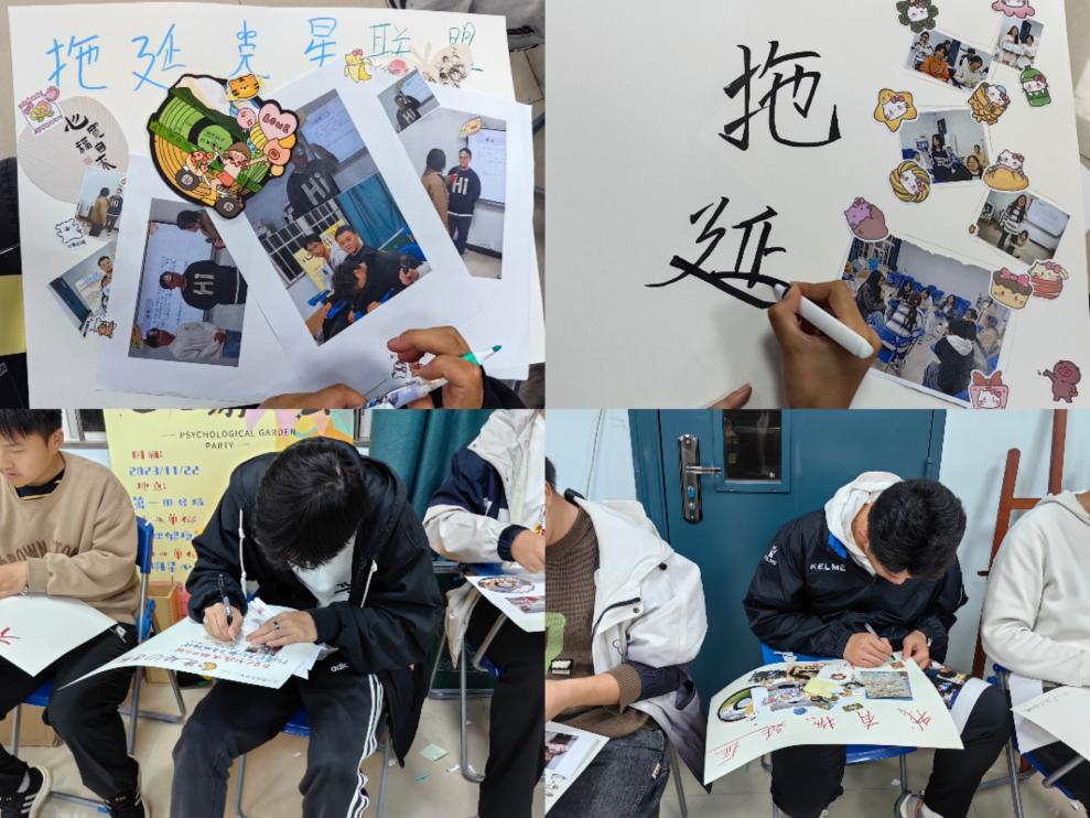 最后,开展了制作“拖延症克星联盟”DIY 手账。在这个环节中,同学们被鼓励充分施展自己的创造力和想象力,他们精心地记录着在“拖延克星联盟”系列团辅活动中的每一个美好瞬间,那些欢笑、思考与成长的点滴都被一一珍藏在手账之中。活动中同学们积极配合、专注投入,专注于每一个细节,在沉浸式的体验当中享受艺术创作的过程,逐渐回归内心的平静。