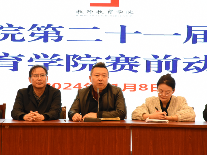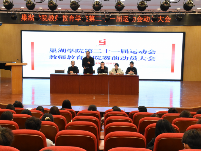 为全力迎接学校2024年秋季运动会,充分调动运动员积极性,11月8日中午12:30,教师教育学院在艺术楼报告厅召开必赢76net官网第二十一届运动会赛前动员大会,教师教育学院党委书记朱玉票、副院长蔡广、党委副书记左劲中、全体辅导员及运动员参会,会议由学院团委副书记汤重主持。