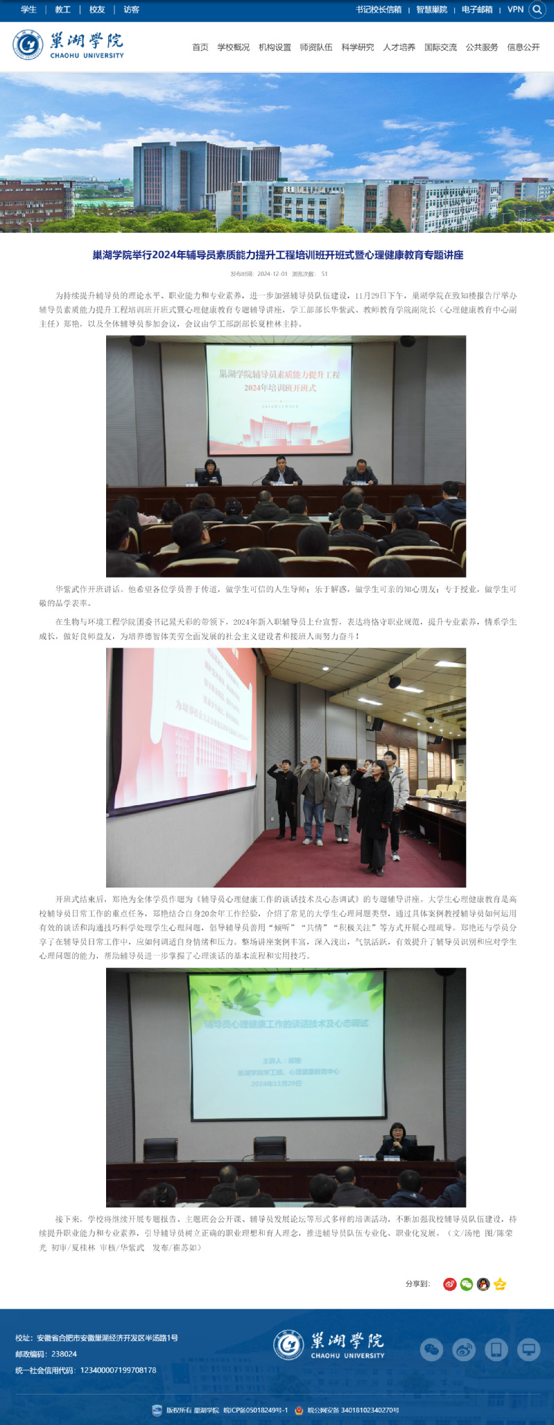 心理健康教育中心举办2024年辅导员心理健康教育专题讲座