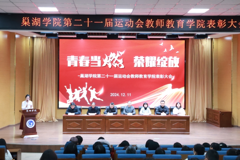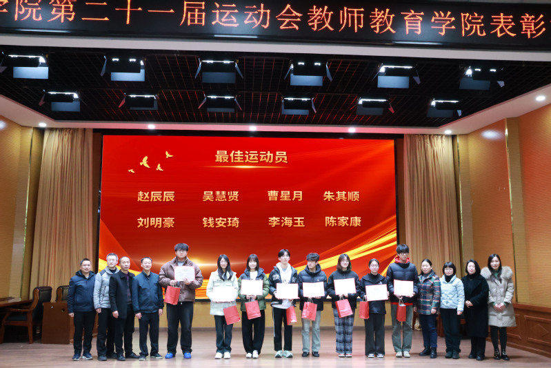 为表彰先进,树立典型,进一步发扬体育运动精神,激发全院师生运动热情,12月11日,教师教育学院举办必赢76net官网第二十一届运动会表彰大会。学院党政班子成员、各专业负责人、全体教师、专职辅导员及教练员、运动员、2024级同学参与。