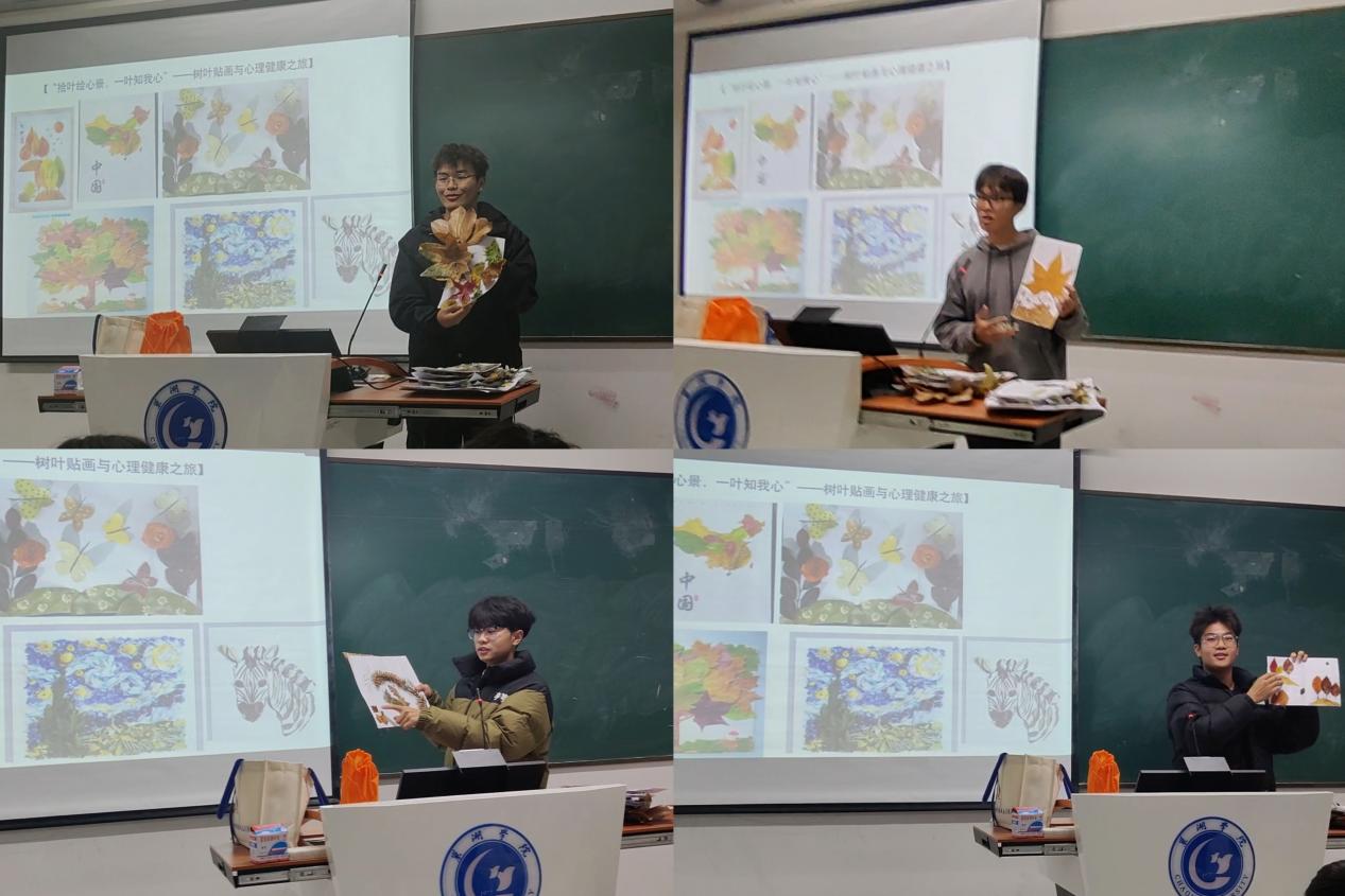 冬虽已至,秋景尚留。为陶冶同学们的情操,培养同学们的动手能力、创新能力、审美能力和艺术修养,“12·5心理健康宣传教育月”期间,我校心理健康教育中心举办了一场“拾叶绘心景,一叶知我心”树叶贴画与心理健康之旅活动,在