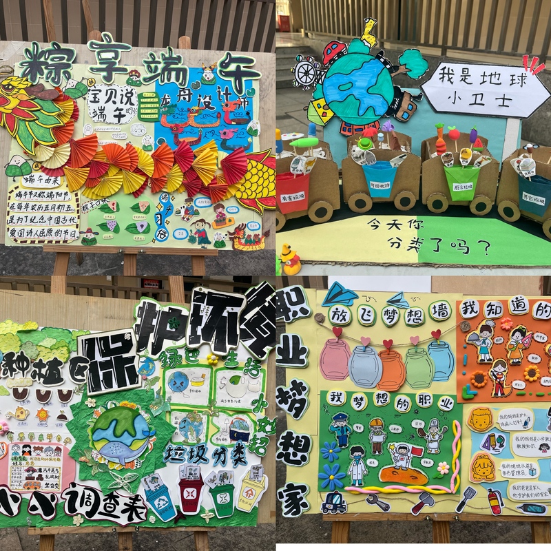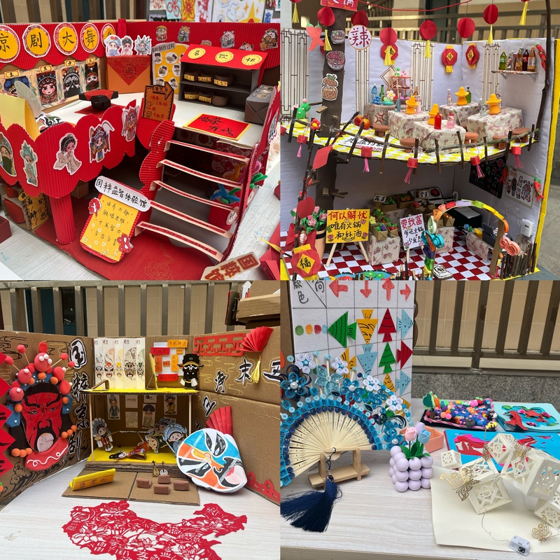 作品展现场,共60余件精心制作的玩教具,可分为基础材料玩教具与教学综合材料玩教具两大类。基础材料玩教具主要是由单一材料或某一类技法创作完成,如有栩栩如生的节日窗花、精美立体的纸雕塑蝴蝶、可爱的黏土泥人,重点考查同学们的手工基础技能水平。教学综合材料玩教具是同学们综合运用各类材料与基础手工技能技巧,以领域教学玩教具、主题墙以及区角模型为方向,分组制作完成。现场,可以看到“粽享端午”主题墙、“职业梦想家”主题墙、“蛇年大吉”益智箱、“京剧大舞台”区角模型、“地球小卫士”社会领域玩教具等。