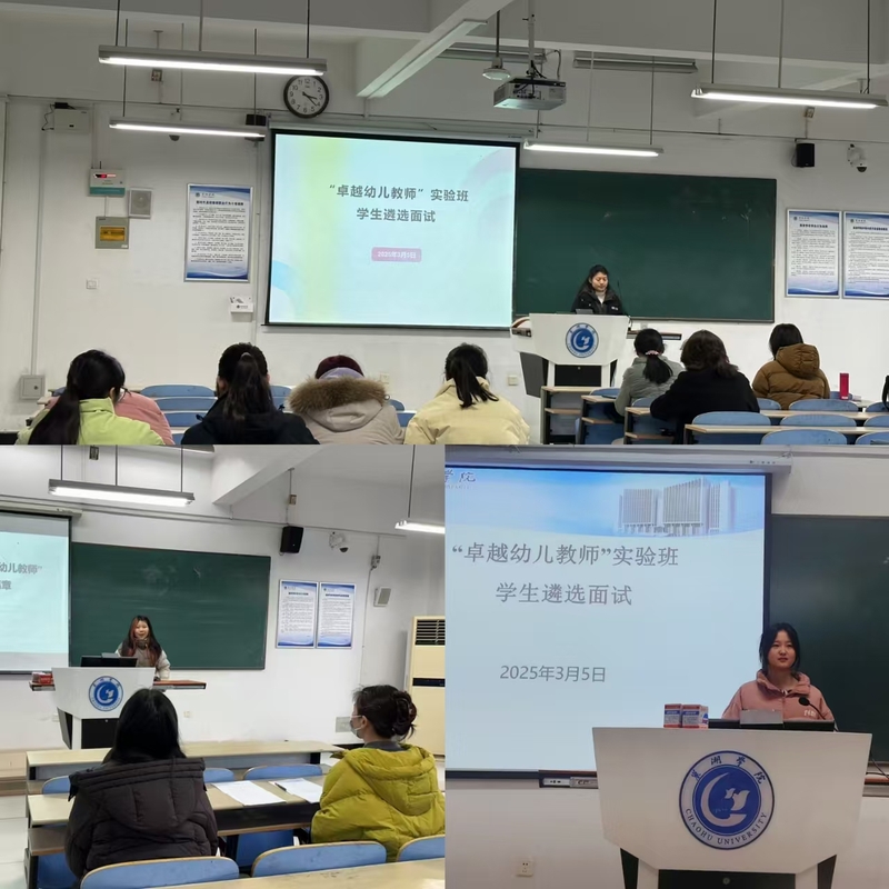 3月5日下午,教师教育学院学前教育专业2023级“卓越幼儿教师”实验班学生遴选面试工作在慎思楼北301、302、303教室举行。此次面试根据《教师教育学院学前教育专业“卓越幼儿教师培养计划”实施方案(试行)》及《教师教育学院学前教育专业“卓越幼儿教师”实验班学生遴选工作实施方案》的相关要求,选拔出优秀学生进入“卓越幼儿教师”实验班。