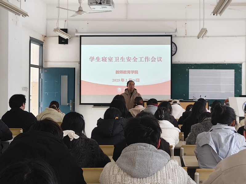 为进一步加强学生寝室管理,扎实推动学生文明行为养成教育,教师教育学院于2025年2月26日下午在艺术楼东202教室召开学生寝室卫生安全工作会议。学院全体辅导员、非毕业班学生党员、各学生组织骨干参加会议。