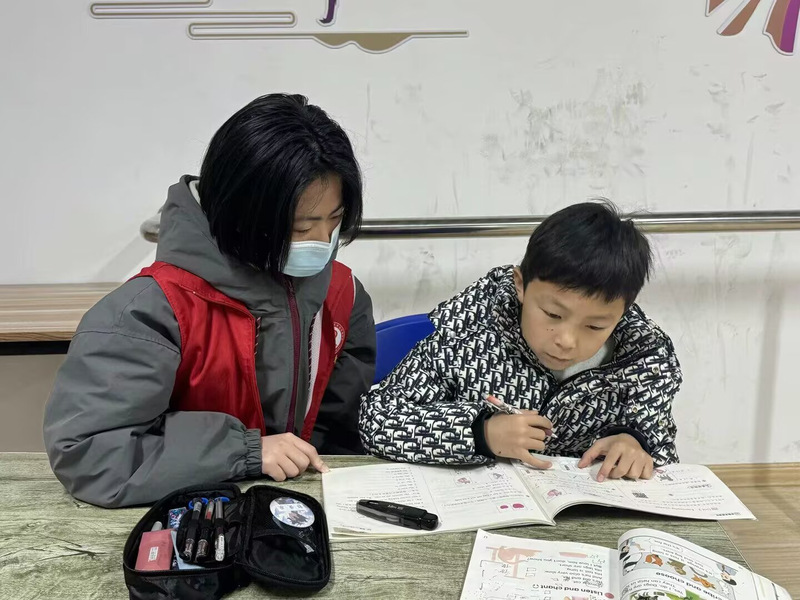 抵达目的地后,志愿者们迅速投入到志愿服务当中,第一时间来到小朋友们身边,耐心地为他们辅导功课,针对学业上的难题逐一答疑解惑。