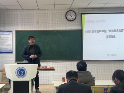 甘超首先介绍了教师教育学院“六卓越一拔尖”项目的建设背景与进展,并详细解读了“卓越幼儿教师”实验班的培养目标、培养举措及课程设置。他强调,实验班的设立旨在通过创新培养模式,打造一批具有卓越素养的幼儿教师,为学前教育事业发展注入新动力。