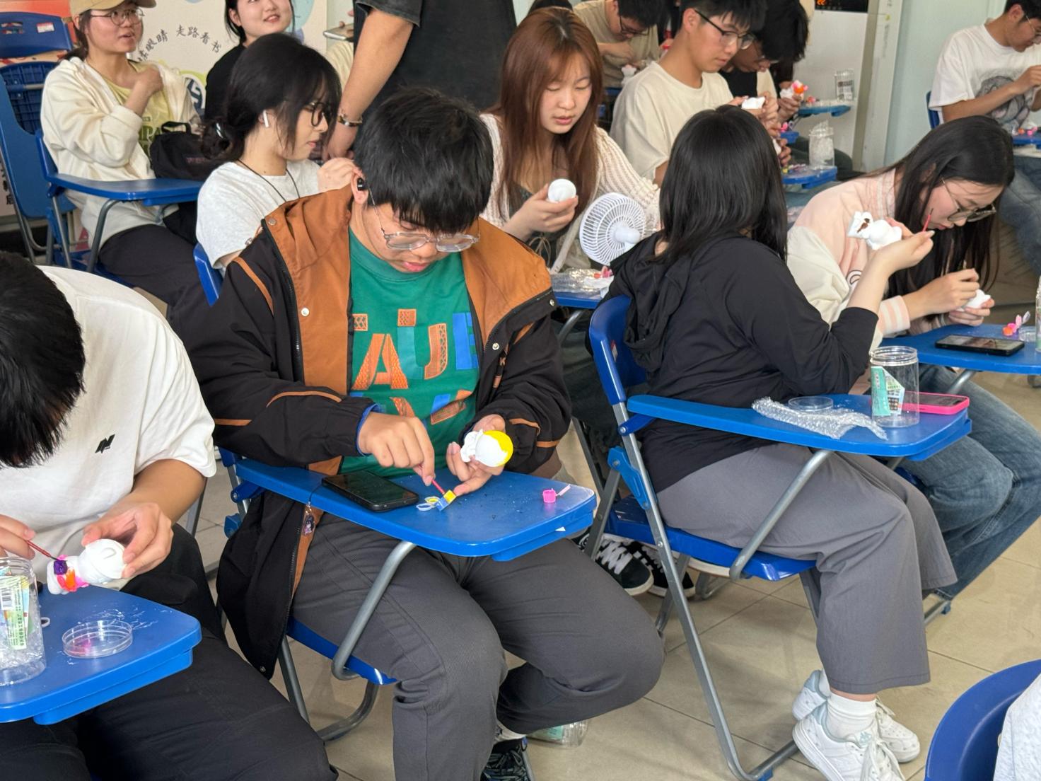 活动核心环节——石膏娃娃彩绘将气氛推向高潮。工作人员为每位同学分发纯白石膏娃娃及环保颜料,鼓励大家自由创作。参与者们或专注描绘细节,或与同伴交流配色灵感,原本素净的石膏逐渐被赋予缤纷色彩与个性表达。“绘画时感觉烦恼都消散了,专注创作的过程特别治愈!”参与同学感慨道。