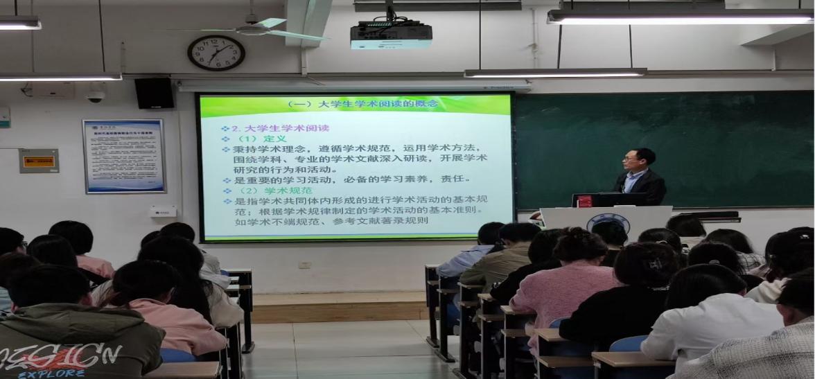 讲座伊始,丁明刚教授从阅读、学术、知识等概念入手,指出学术阅读对于大学生人才培养、专业学习、科学研究、阅读提升的重要价值。