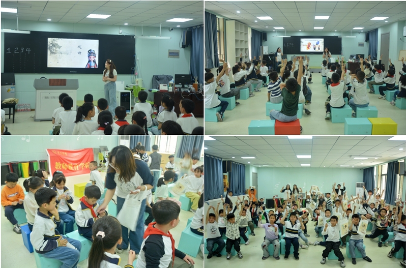 4月17日上午,团队走进安徽师范大学附属外国语学校,开展“庐剧进课堂”美育宣讲活动。通过播放精选剧目片段、讲解庐剧历史、示范经典动作等方式,团队成员以生动有趣的形式向中小学生普及庐剧知识。在互动环节,小朋友们踊跃尝试戏曲手势和唱腔,现场气氛热烈。此次活动不仅让孩子们近距离感受传统戏曲的魅力,也为庐剧的未来传承播撒了新的种子。