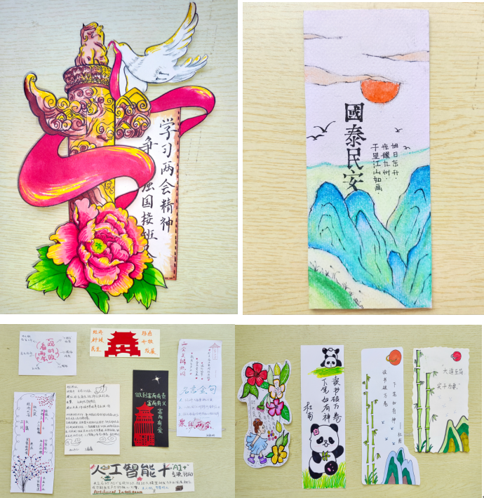 创意设计,共绘两会新声。教师教育学院同学们聚焦习近平总书记两会金句,全国两会的热点关键词、重要决策部署等,结合学习感悟,发挥聪明才智,通过手绘的方式,设计出他们眼中的“两会”书签,展现青年大学生对国家大事的关注和思考。