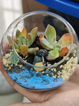 每组随机抽取一份植物盲盒,并在卡片上写下养护承诺(如“每日浇水一次”“保证充足光照”)。这一环节不仅强化了责任意识,更以“共同照料”的形式延续了活动的联结——参与者可将微景观和盲盒带回宿舍长期养护,让园艺的治愈力持续发挥作用。