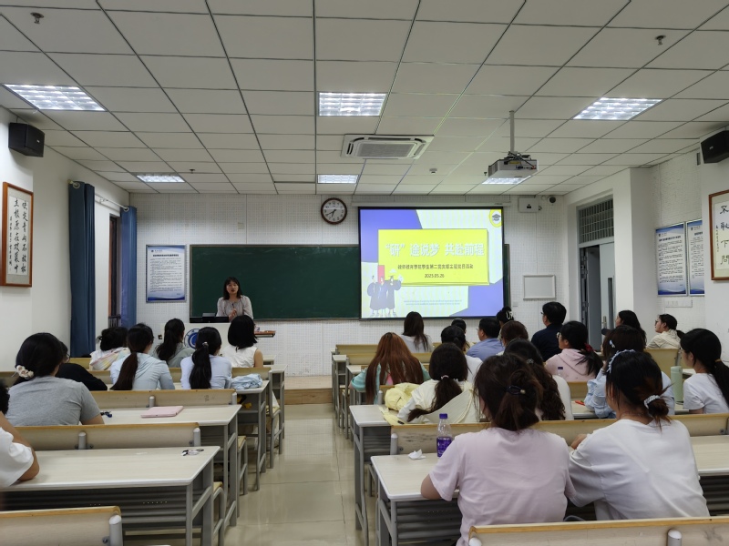 5月26日18:30,教师教育学院学生第二党支部在崇学楼南201教室举办“研途说梦 共赴前程”主题党日活动。活动邀请了支部四名成功考取研究生的优秀党员代表进行经验分享。教育系主任甘超、实验中心负责人倪冰、支部全体党员及23级“卓越幼儿教师”实验班同学参加了此次活动,活动由支部书记汤重主持。