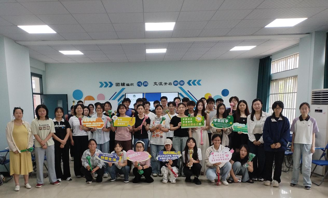 活动最后,全体同学进行合影留念。镜头定格下灿烂笑容,也留存这场活动的欢乐与成长。这场活动以趣味互动、团队协作串联全程,在游戏里释放压力、于协作中凝聚心力,不仅让同学们收获了快乐、看见自身光芒,更传递感恩温度,以青春行动书写校园心理健康实践的温暖注脚。(文/杜婉秋 图/汤雅文 初审/郑艳 终审/蔡广)