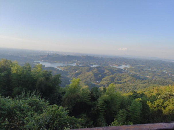 翌日攀登石佛山,壮丽的图景瞬间征服实践团队成员。凭栏远眺,视野开阔无穷,脚下,蜿蜒曲折的天子湖在阳光下泛着粼粼波光;远处,葱郁的丘陵如绿色波涛般层层叠叠,一直延伸至地平线;点缀其间的城镇村落,勾勒出人与自然和谐共生的画卷。