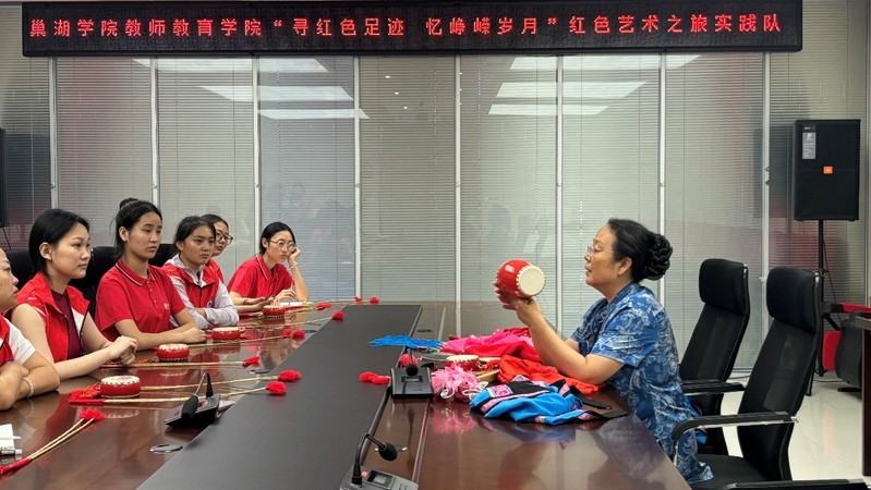 7月2日下午,实践团来到凤阳县文化馆,国家级非遗项目凤阳花鼓的激昂鼓点瞬间点燃了现场气氛。省级非遗传承人肖庆红以一曲《鲜花调》展示了凤阳花鼓的独特魅力,实践团成员在肖老师的指导下,纷纷拿起鼓槌学习花鼓动作,亲身体验这一传统艺术的精髓。访谈中,肖老师分享了她的传承故事,她表示传承与发展传统技艺,要坚持守正创新,为此,她大胆尝试将花鼓与健美操结合,编排成兼具传统韵味与现代活力的健身操。实践团成员被肖老师透在骨子里的热爱和坚守深深打动,更深刻感受到非遗传承人的匠心坚守与文化担当。