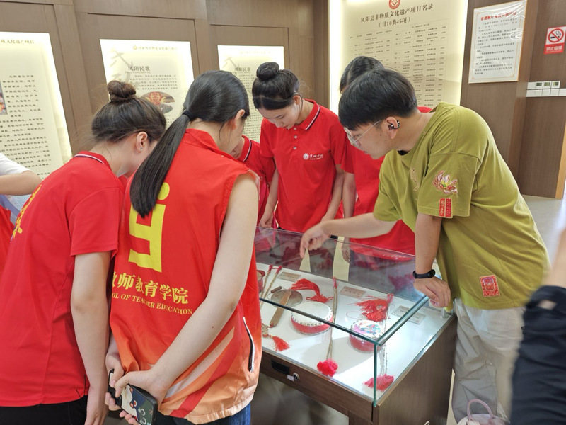 凤阳县素有“花鼓之乡”“改革之乡”“曲艺之乡”以及民间文化艺术之乡等多重美誉,文化底蕴深厚。 7月2日上午, 实践团踏入凤阳县博物馆,感受古中都的辉煌与典雅。展馆内,蟠龙石础见证皇城威严,史前文明展唤醒神秘记忆,金发冠折射明代审美,中都城模型再现工匠智慧,花鼓艺术承载百年文化,每一件文物都是解码凤阳历史的“钥匙”。实践团成员在这里触摸历史脉络,感知文化温度和历史厚度,深刻理解了中华文化强大的生命力和持续创新能力。