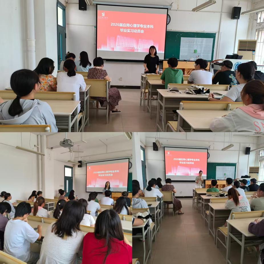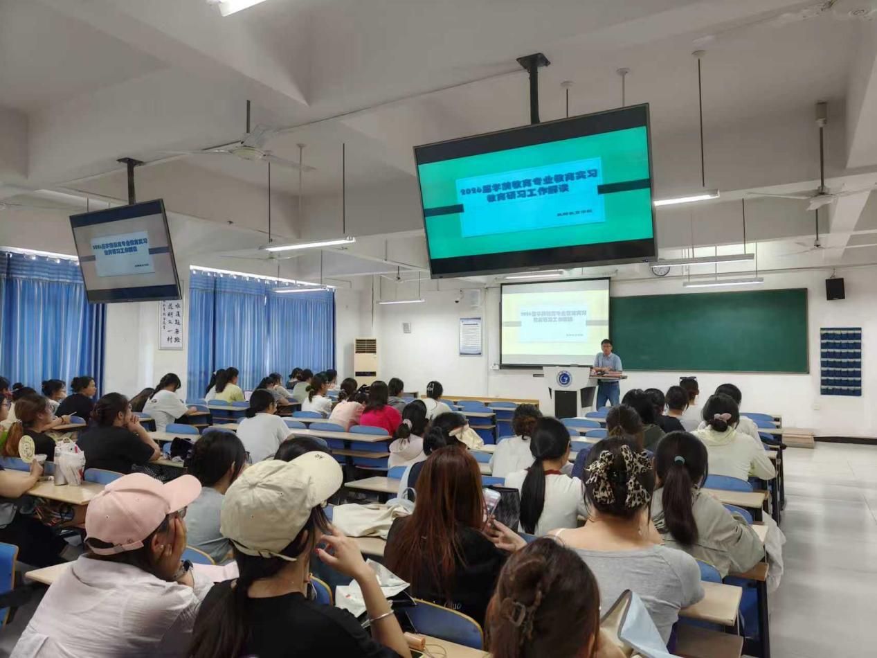 93日,教师教育学院召开2026届毕业生实习动员会,为即将奔赴实习岗位的学生明确方向、提振信心。教师教育学院副院长郑艳主持会议,教育系主任甘超、副主任邹长华、实习带队教师、辅导员代佳鑫,学前教育专业22级本科、24级专升本和应用心理学专业22级本科全体学生参加了会议。