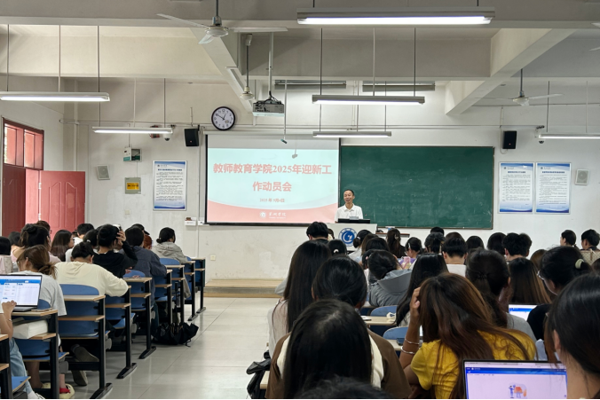 为统筹做好学院2025级新生入学报到工作,9月4日下午,教师教育学院在慎思楼中102教室召开2025年迎新工作动员会,全面部署新生入学接待工作。学院党委副书记左劲中、全体新生辅导员及迎新志愿者参加会议。会议由学院团委挂职副书记代佳鑫主持。
