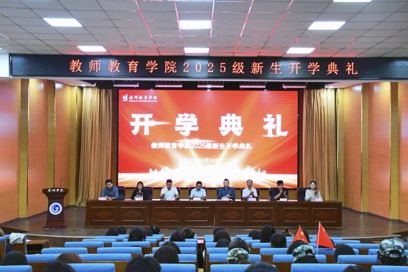 秋风送爽启新程,青春筑梦正当时。9月24日晚,教师教育学院在求实楼报告厅举行2025级新生开学典礼。学院党政领导班子成员、各专业负责人、教师代表、专职辅导员及2025级全体新生齐聚一堂,共同见证这一重要时刻。典礼由学院党委副书记胡传双主持。