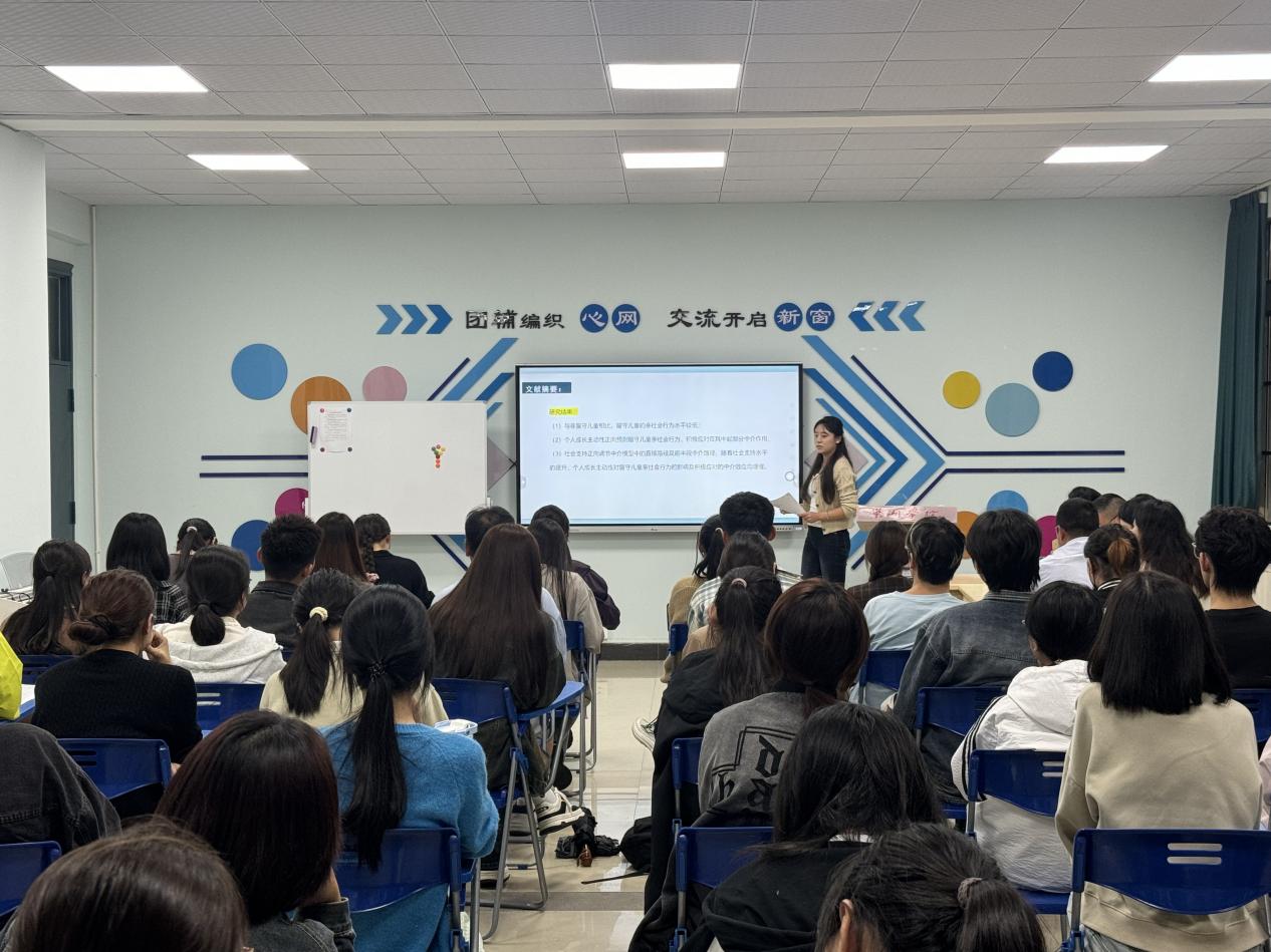 新学期新气象,教师教育学院“心心向研”科研小组完成招募选拔新组员后,于2025年10月16日晚在艺术楼二楼团辅室迎来了本学期第三次组会。与以往不同的是,本次组会吸纳了2025级新成员,会议由24级应用心理学专业高梦然同学主持,教师教育学院副院长郑艳到场指导,应用心理学专业教师信中贵、朱平、袁惠、管锦亮和心理健康教育中心挂职教师谢丹丹出席,“心心向研”科研小组64名组员参加。