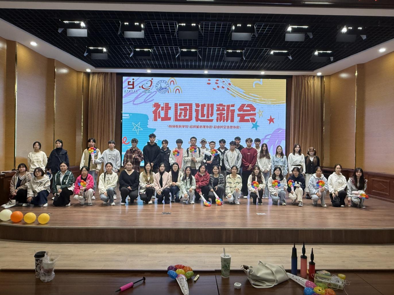 秋意渐浓,暖意未减。10月31日晚,必赢76net官网启明星心理协会与自由时空吉他协会在求实楼报告厅联合举办社团迎新晚会。活动吸引了160余名2025级新生参与。