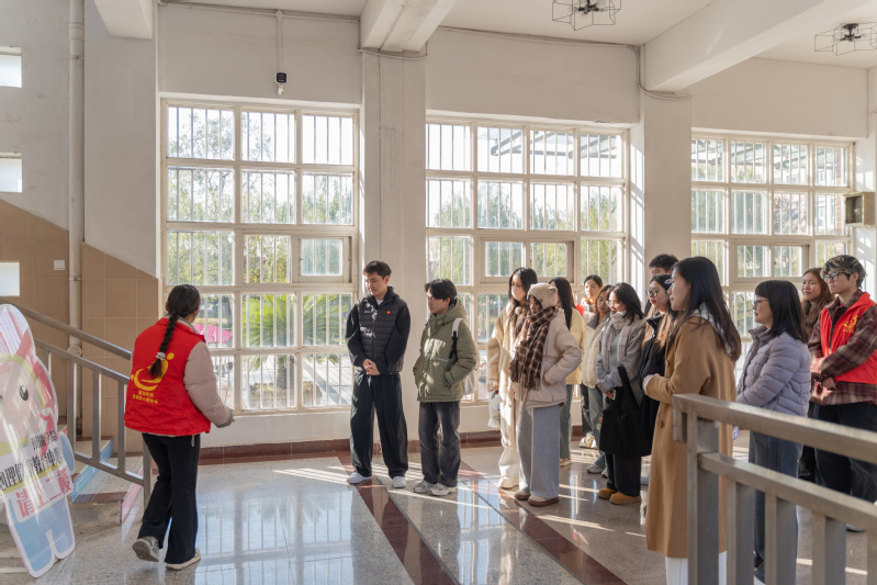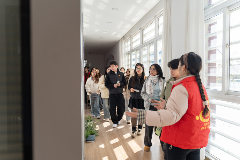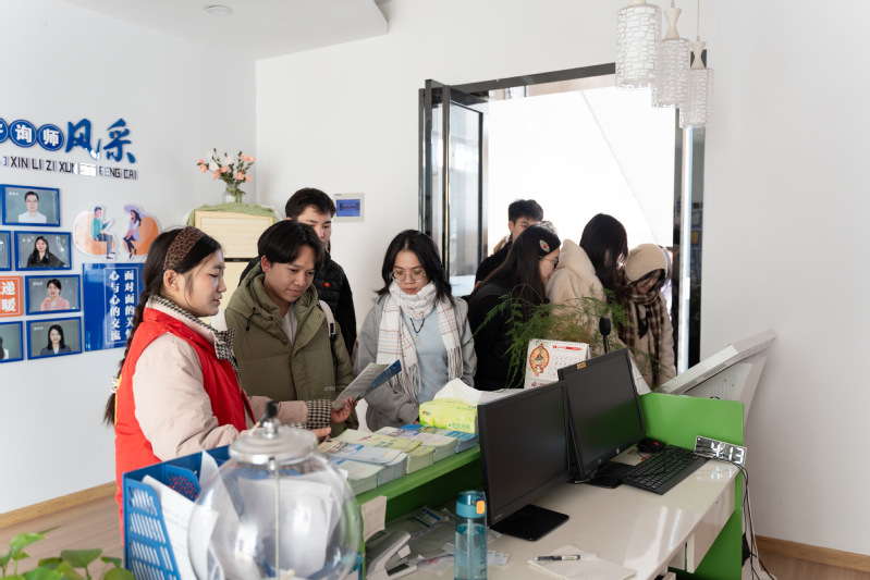 活动现场,多个体验环节依次开展。大家从艺术楼大厅有序集合,沿着贴有心理寄语的台阶步入心理健康教育中心。讲解员带领大家参观中心的功能布局:从接待大厅到温馨舒适的个体咨询室,再到配备沙具、解压器材的特色功能室,每一处空间的设计都被赋予“关怀”的注脚,让留学生们快速熟悉校内的心理支持资源,在动静结合的体验中感受人文关怀。