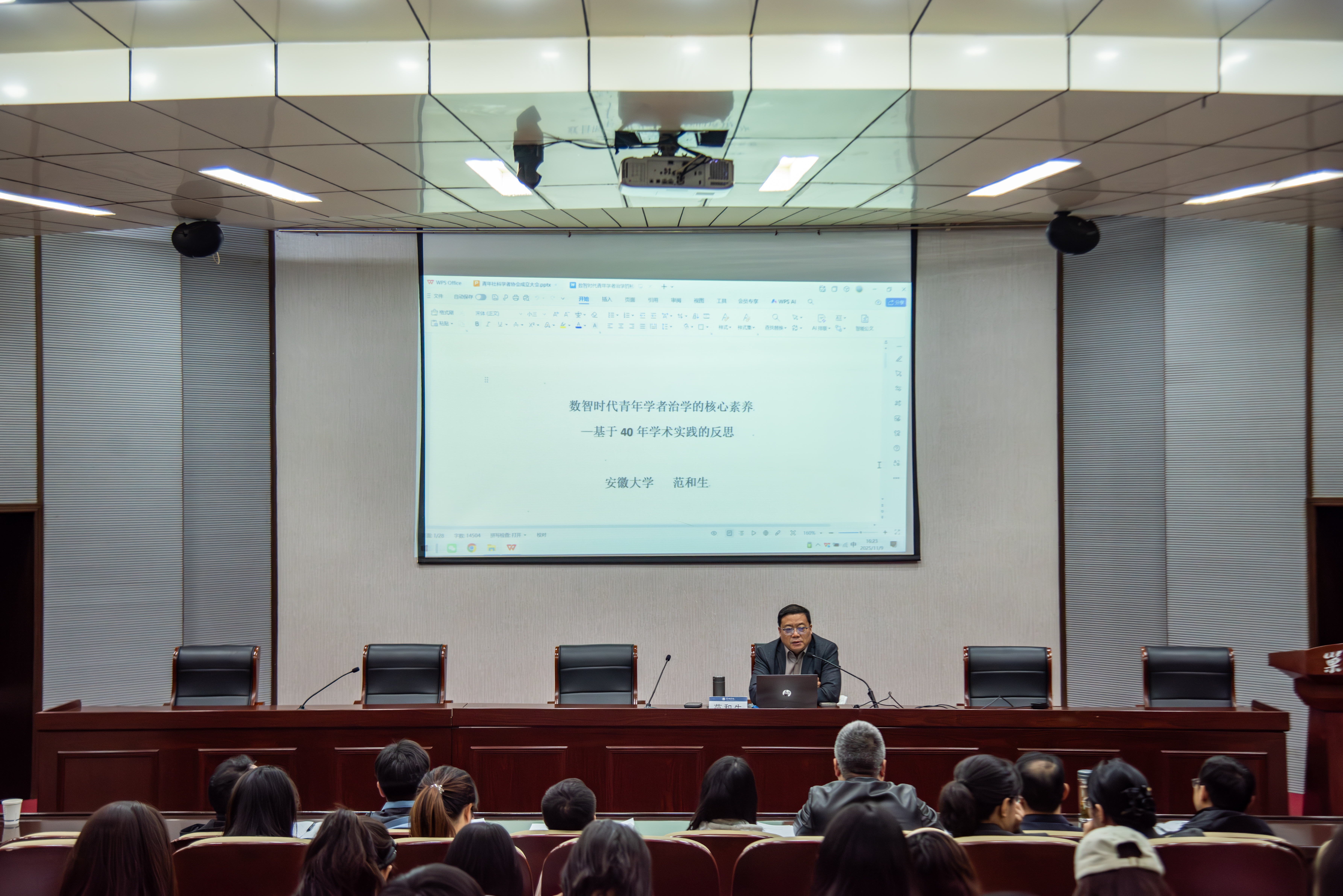 11月9日下午,学校青年社科学者协会在致知楼报告厅举办首次学术交流活动。活动特邀安徽大学社会与政治学院范和生教授作专题报告,校科研处处长姚磊主持,校青年社科学者协会会员120余人参加。