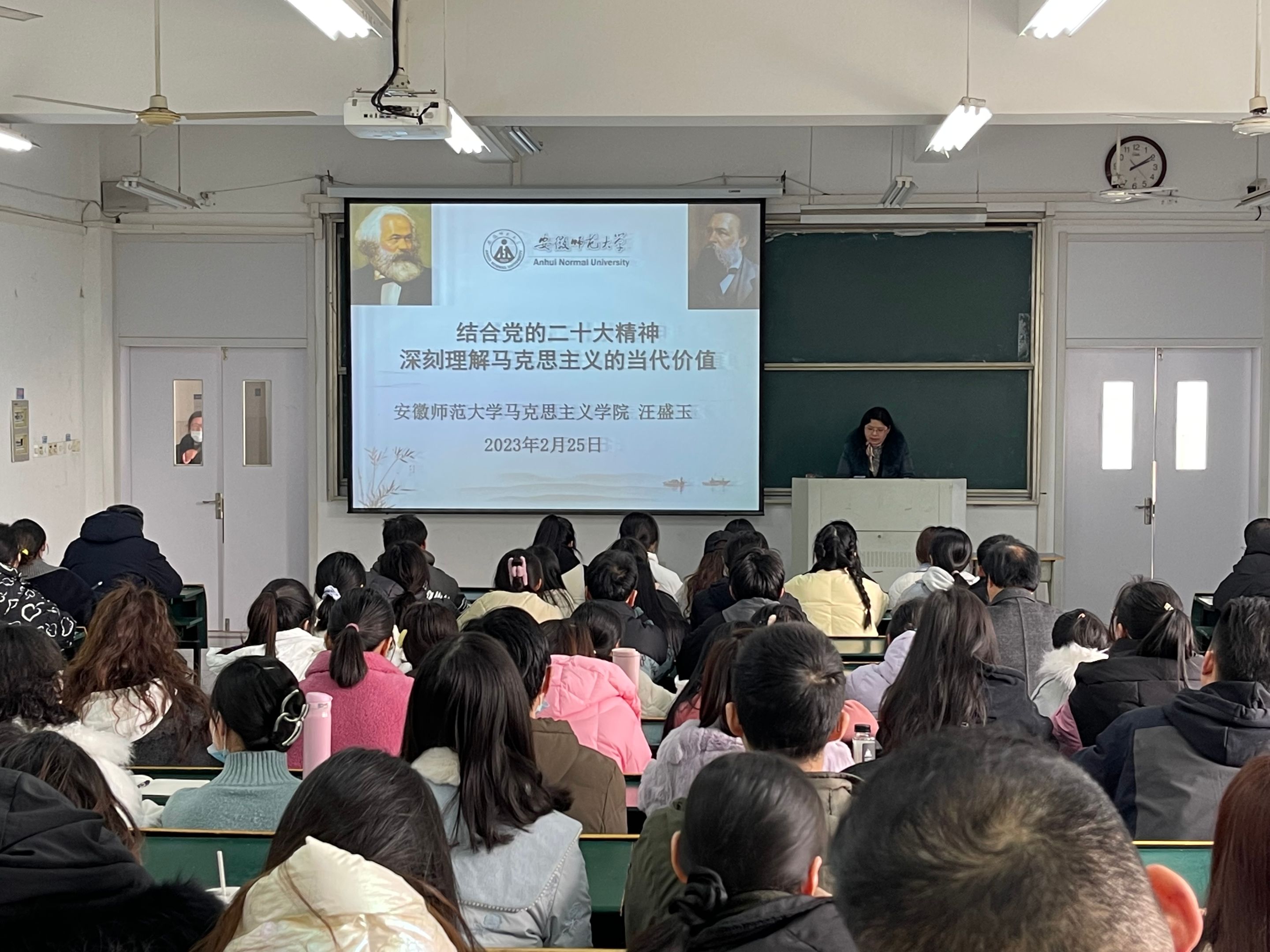 在整个教学过程中,汪教授教态亲切自然,教学内容精炼,教学逻辑性强,教学环节一气呵成。在教学总结阶段,汪教授结合党的二十大内容,强调了马克思主义是我们观察当代世界变化的认识工具,是指引当代中国发展的行动指南,是引领人类社会进步的科学真理。她激励学生在深刻理解马克思主义内容的同时,要有自己坚定的理想和信念。