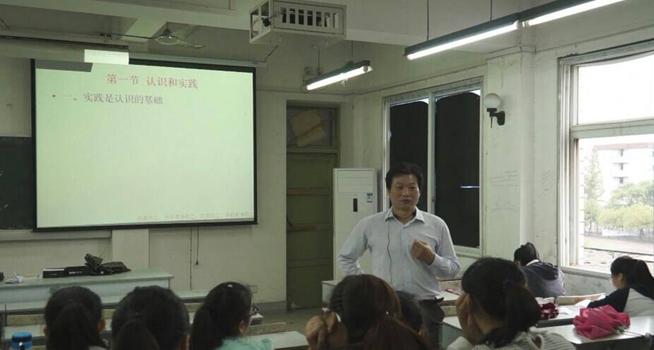 课堂上,刘名成以“问题”导入,重点分析了“认识和实践的主体与客体”、“实践在认识中的决定作用”,并对主客体的含义、主客体的关系等内容进行了详细阐述。整个教学过程中,刘名成教态亲切自然、教学内容条理清晰、教学重点突出。在教学环节的设计上,他巧用一些生动且贴近学生生活实际的案例,恰到好处地帮助学生理解理论知识,使整个教学过程生动且不失严谨,给参加观摩的师生留下深刻的印象。