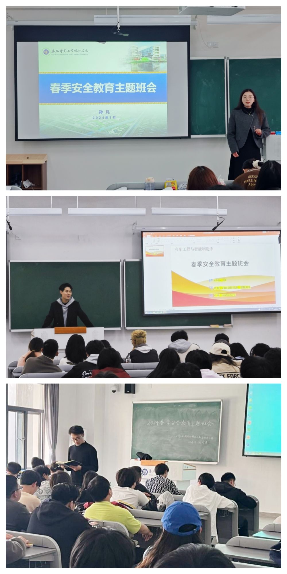 春季是各类安全隐患的高发期,也是学生安全教育工作的重要节点。汽车工程与智能制造系高度重视校园安全工作,召开安全教育工作会议。各年级辅导员针对春季安全教育问题,精心策划召开主题班会向同学们讲述宿舍安全、用电安全、交通安全、财产安全、心理安全、网络安全等实际案例,将安全观念入耳、入脑、入心,在日常学习和生活中防患于未然。