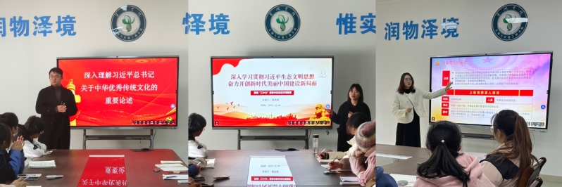 学院分团委书记晁天彩详细解读了习近平总书记在党的二十大报告中关于生态文明建设的重要论述,深度阐述了新时代我国生态文明实践中的新形势和重大战略部署。学生第一党支部书记邢权向学员们解读了习近平总书记关于中华优秀传统文化的重要论述,引导学员们要坚持马克思主义的方法,结合新的时代条件继承和弘扬中华优秀传统文化。学生第二党支部书记潘晨详细介绍了发展党员的流程,并围绕“党员的条件、义务和权利”,阐释了应如何以实际行动向党组织靠拢,将学习贯彻习近平新时代中国特色社会主义思想践行于学习和生活实际。