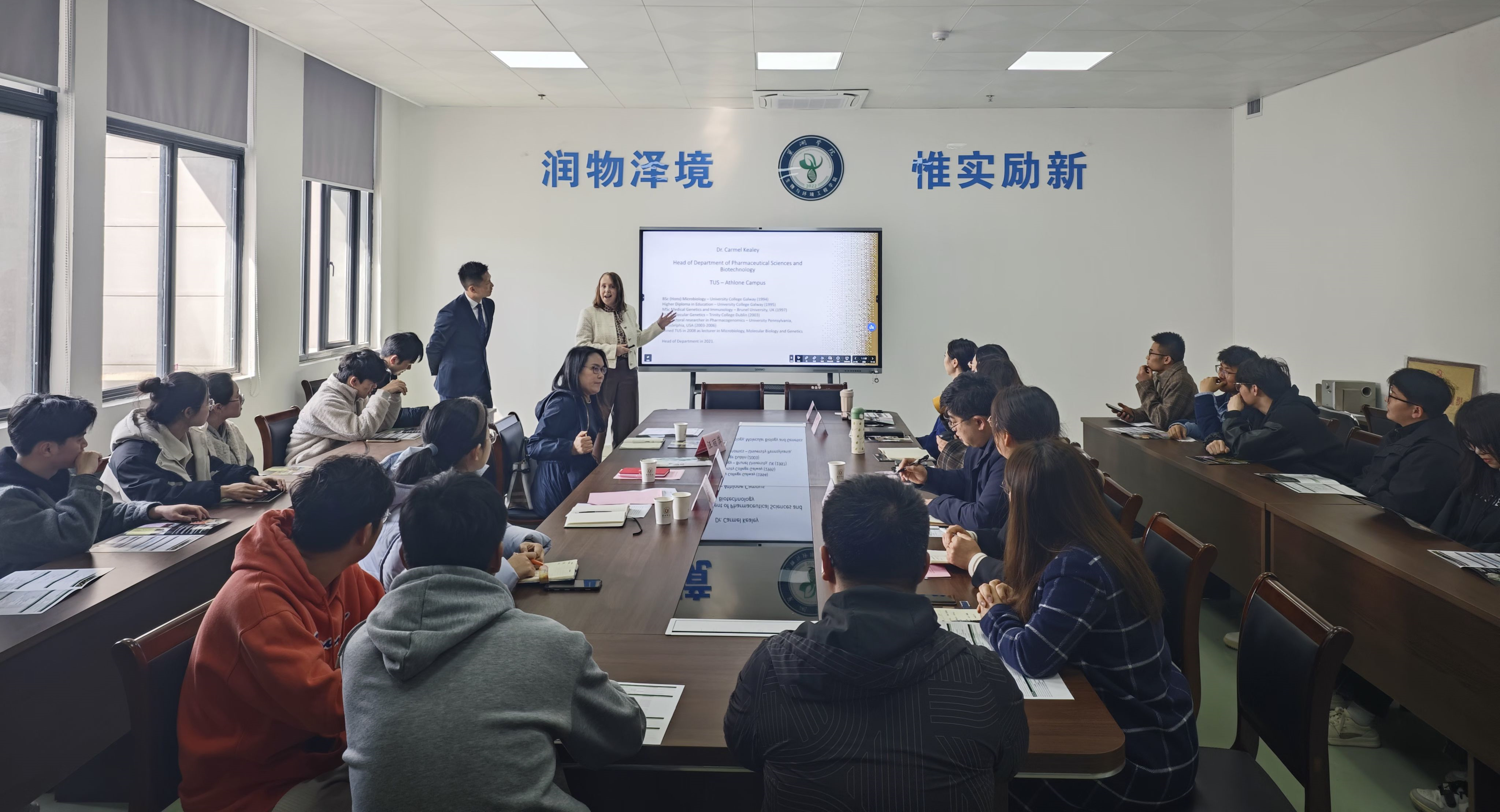 座谈会后,Carmel Kealey博士为生物与环境工程学院的师生做了题为“全球制药业创新之源——爱尔兰药学介绍”的报告。她深入浅出地阐述了爱尔兰制药业的发展现状及其在全球范围内的重要地位,介绍了香农理工大学制药科学与生物技术系的办学情况,并就制药专业的课程设置和办学特色进行了简单说明。(图/邢权、宋俊梅 文/赵越 初审/晏娟 终审/陈小举 )
