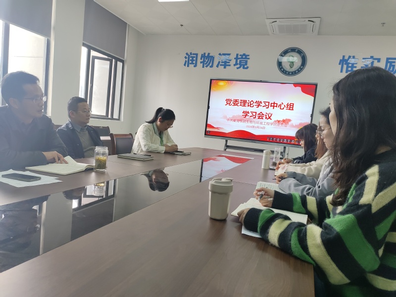 3月28日下午,生物与环境工程学院在学院会议室召开党委理论学习中心组学习会议。院党委书记徐兆武主持会议。学院党委委员、各党支部书记参加会议,副院长晏娟(党外人士)列席会议。