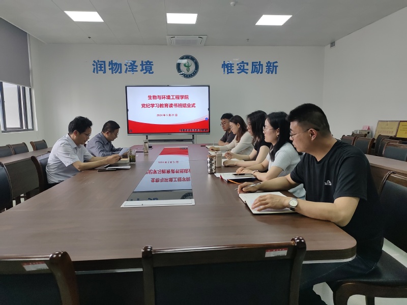 按照学校党委统一部署和学院党纪学习教育专题读书班工作安排,5月21日上午,生物与环境工程学院在会议室举行党纪学习教育读书班专题学习研讨暨结业式。学院党委书记徐兆武主持结业式并作总结讲话。学院党委副书记、党委委员、各党支部书记、党委组织员参加会议。
