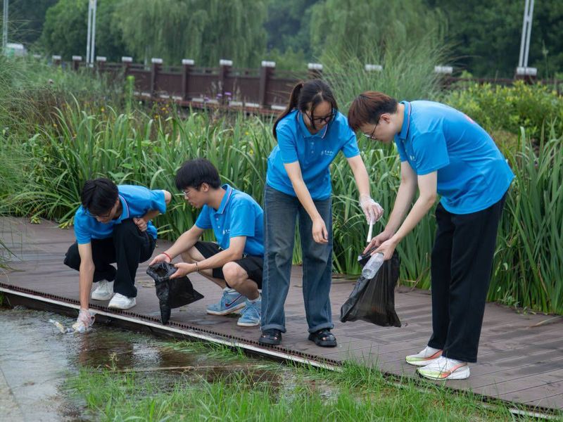 7月16日,实践团队前往半汤街道生态文明公园,开展河流检测以及维护工作。志愿者们分成三个小组,携带清洁工具,将水中的塑料袋和草丛中的废弃物捡起,并分类投放,以实际行动践行“绿水青山就是金山银山”的生态理念。