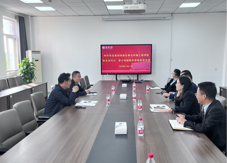 为推进我院深度融入长三角教育一体化发展,落实、落细学校与嘉兴大学《深度融入长三角教育一体化发展战略合作意向性框架协议》,学习借鉴研究生培养方面的先进经验,探索研究生教育的新模式和新机制,2024年11月12日,生物与环境工程学院党委书记徐兆武、副院长(主持工作)陈小举一行赴嘉兴大学生物与化学工程学院学习调研。嘉兴大学生物与化学工程学院党委书记任玉萍、院长曹雪波等班子成员接待了我院一行。