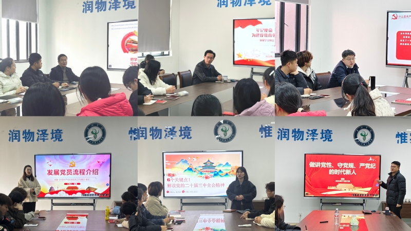学院团委书记晁天彩带领学员共同回顾党的二十届三中全会的召开背景与深远意义,强调了此次会议在新时代中国特色社会主义事业发展中的里程碑地位,并围绕“6个关键点”,对全会精神进行了全面而深入的解读。学生第一党支部书记邢权以“做讲党性,守党规,严党纪的时代新人”为主题,向学员们阐述了强化党性修养,严守党规党纪,是中国共产党的建设的根本问题,也是每名党员的终身课题。学生第二党支部书记潘晨详细介绍了发展党员的流程,并围绕“党员的条件、义务和权利”,阐释了应如何以实际行动向党组织靠拢,将学习贯彻习近平新时代中国特色社会主义思想践行于学习和生活实际。