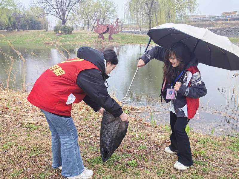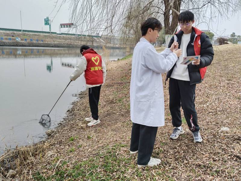 3月6日起,志愿者们多次开展河道巡查活动,观察记录河面漂浮物、水体浑浊度、水体总体感官、河道两岸垃圾等情况,并利用多功能监测设备对水体的酸碱度、含氧量等关键指标进行实时测量和记录。在重点监测区域,志愿者还采集了水样,以便后续进入实验室进行分析和鉴定。与此同时,另一组志愿者手持清洁工具,沿着河道展开了细致的清理工作,重点清除了缠绕在水草中的塑料垃圾和散落在河岸的烟头等污染物,同时还向周边住户和垂钓人员宣传保护水资源、垃圾分类、禁渔禁捕等相关知识,进一步提升居民保护河流周边生态环境的意识。
