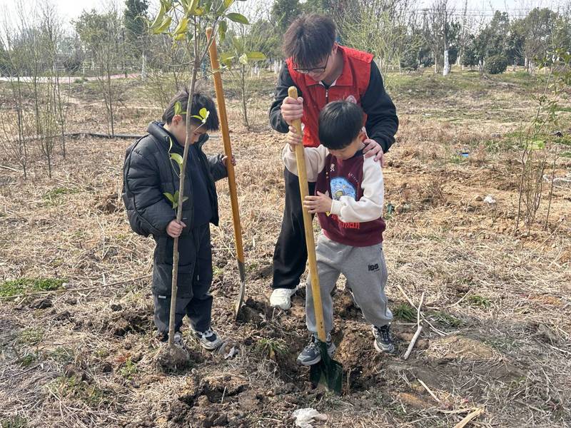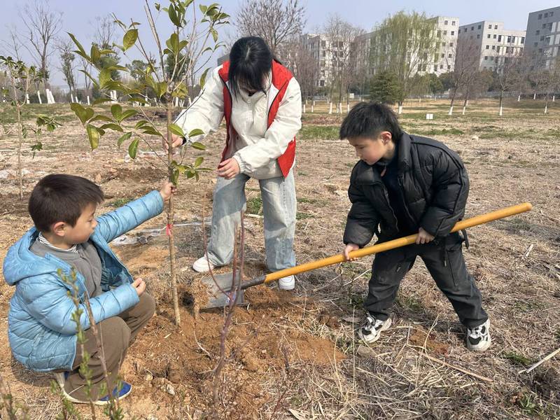 随后,大家一起前往巢湖市科技创新公园开始植树活动,在志愿者的协助下,小朋友们挖坑、填土、种树、浇水,成功种下了载满希望与未来的树苗,看着那一排排新植的树苗,大家心中都充满了成就感。