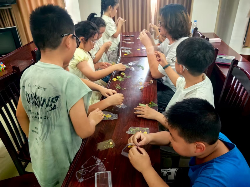 7月14日,课程正式启动。语文课堂以动画演绎成语典故,辅以互动问答,引导学子感悟传统文化智慧;音乐教学中,童谣学唱激发艺术感知;手工实践环节,干花书签制作让自然之美跃然纸上,寓教于乐成效显著。