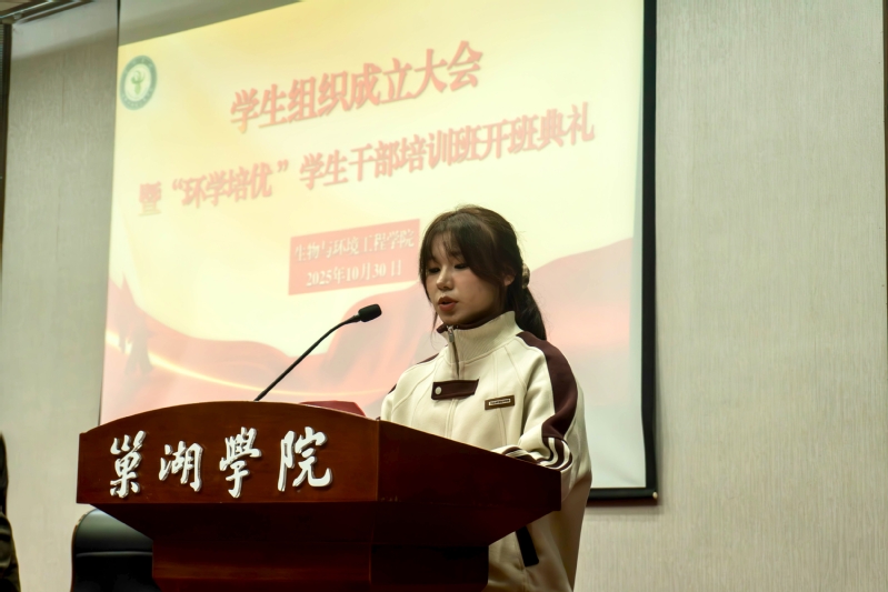 2025年10月30日,生物与环境工程学院在致知楼报告厅举行新一届学生组织成立大会暨“环学培优”学生干部培训班开班典礼。学院党委书记郭超、党委副书记张凌、团委副书记任梦溪及辅导员代表出席活动,大会由学院团委书记晁天彩主持。