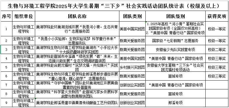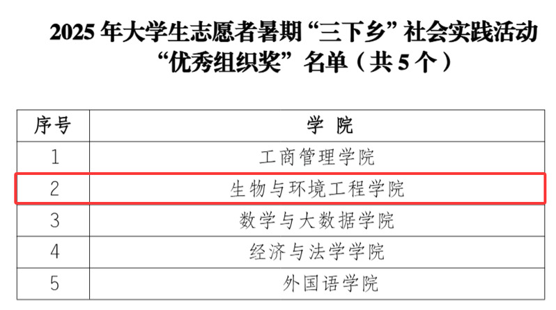 为引导青年学生在社会课堂中“受教育、长才干、作贡献”,生物与环境工程学院在2025年暑期“三下乡”社会实践活动中成绩斐然,荣获学校“优秀组织奖”。在学校评选中,优秀团队获一等奖2项、二等奖1项、三等奖2项;优秀调研报告获二等奖2项、三等奖1项;3位教师获评“优秀指导教师”。从出征仪式的昂扬斗志,到田间地头的扎实服务,再到总结评比的深化提升,本次社会实践全景展现了一堂生动深刻的“行走的‘大思政课’”。