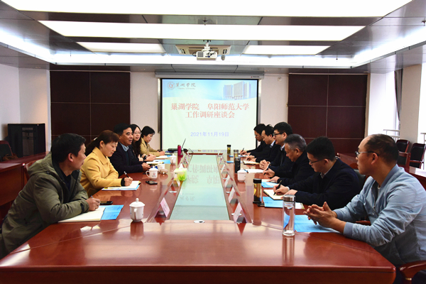 11月19日上午,阜阳师范大学党委常委、副校长张庆旭一行六人来我校调研银校合作和智慧校园建设工作。校党委委员、副校长黄志圣出席并主持座谈会,财务处处长刘亚平、后勤处处长张蕊、信息化处处长吕家云、教务处副处长胡传双等参加座谈交流。