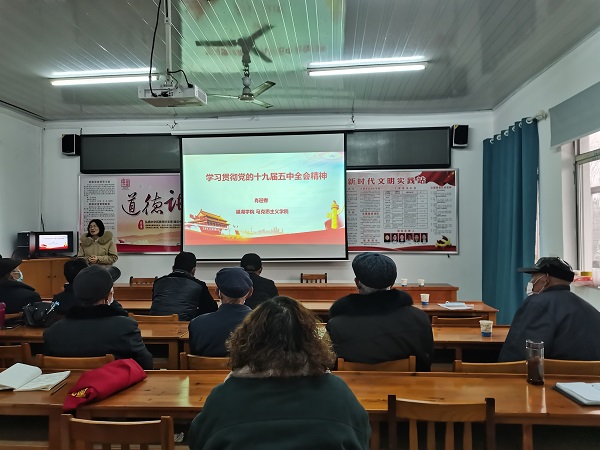 应望城社区党支部之邀,元月21日,马克思主义学院夏明群和肖迎春两位老师为望城社区的党员、干部和群众分别作了《战“疫”大考彰显中国特色社会主义制度优势》和《学习贯彻党的十九届五中全会精神》的专题讲座。