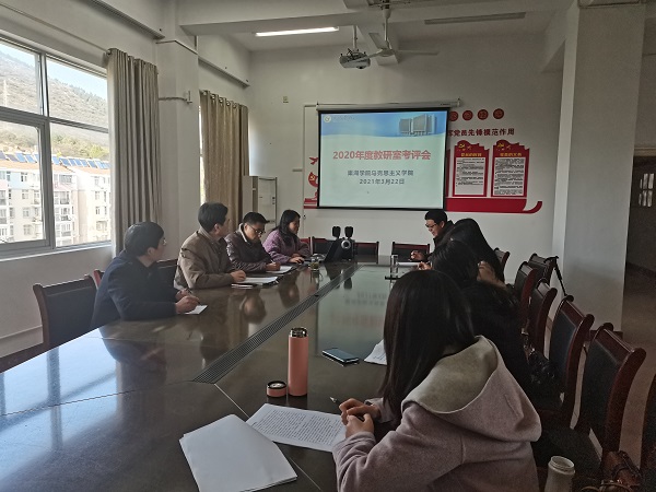 3月22日下午,马克思主义学院召开2020年度教研室考评工作会议,赵光军、杨芳、王红丽三位老师担任评委,会议由副院长赵光军主持,教研室主任、教科研秘书和部分老师参加了会议。
